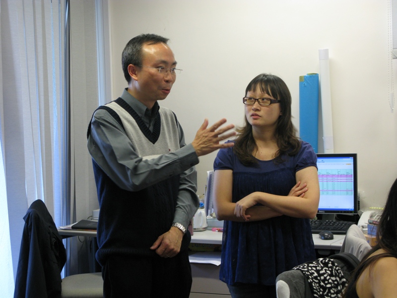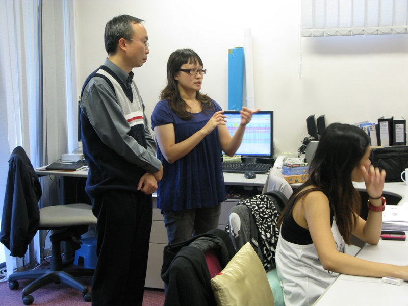 Prof. Ding-qian Gu, deputy dean of faculty of education at Beijing Normal University, and Ms Dan Wei, director of the synthesis section of the department of language planning and administration (PRC ministry of education), visited our centre on 3-4 July 2011. Our team introduced our two corpora to them and we had some discussions on the transcription systems of the HKSL and Cantonese data.