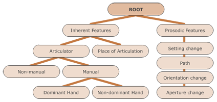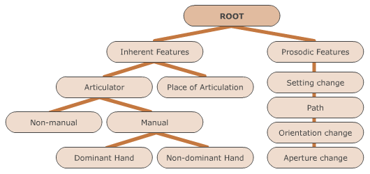 - Detailed phonetic information which includes inherent features (i.e. static features of a sign, like the handshape, place of articulation, body part, palm orientation, handparts, etc.) and prosodic features (i.e. dynamic features of a sign, like path and shape, setting, orientation, aperture and handshape changes, trilled movements, etc.)
